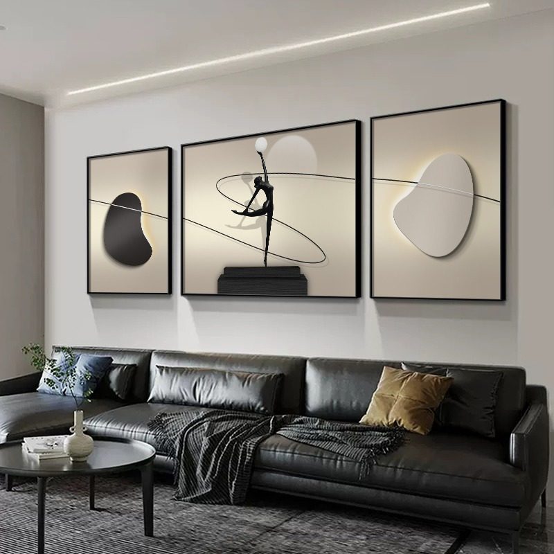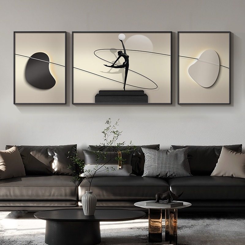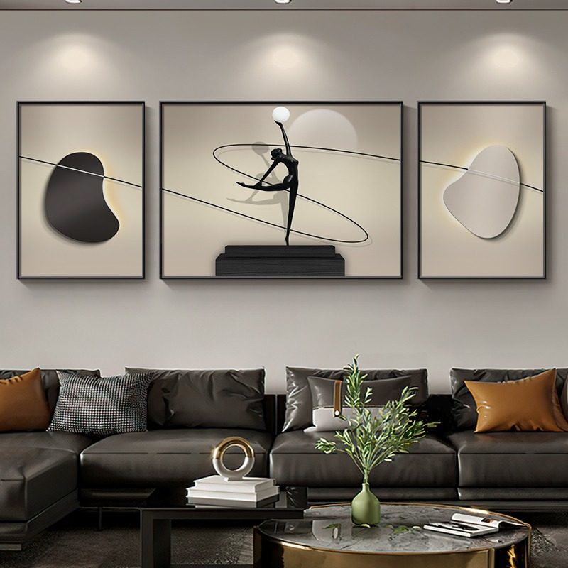 客厅挂画轻奢高级感舞动人生新款三联沙发背景的装饰画壁画立体