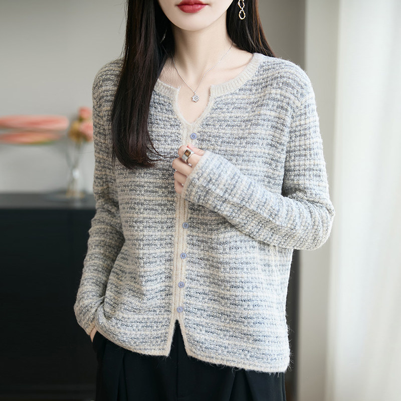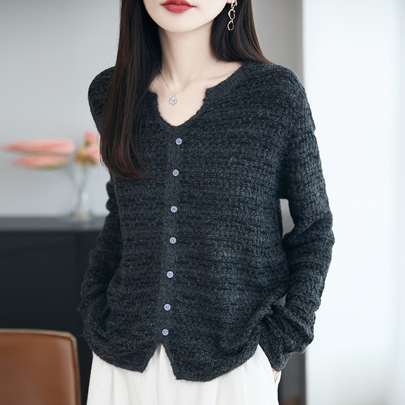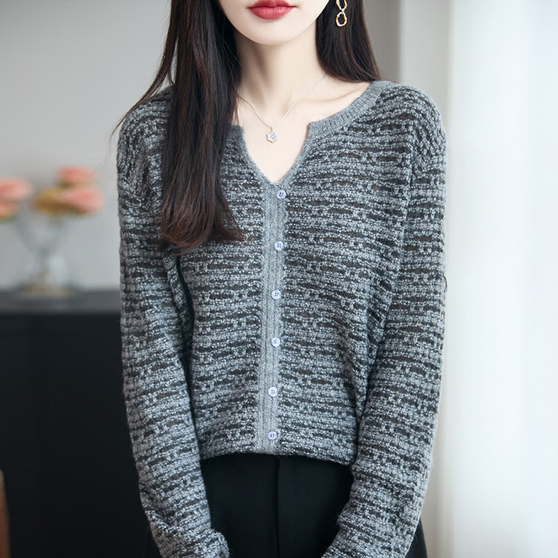 新款羊毛开衫外套女针织打底衫V领2025年春季羊绒外搭短款毛衣女