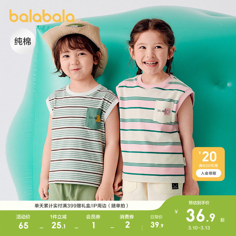 巴拉巴拉童装男童短袖t恤宝宝打底衫纯棉上衣轻薄夏新款女童背心