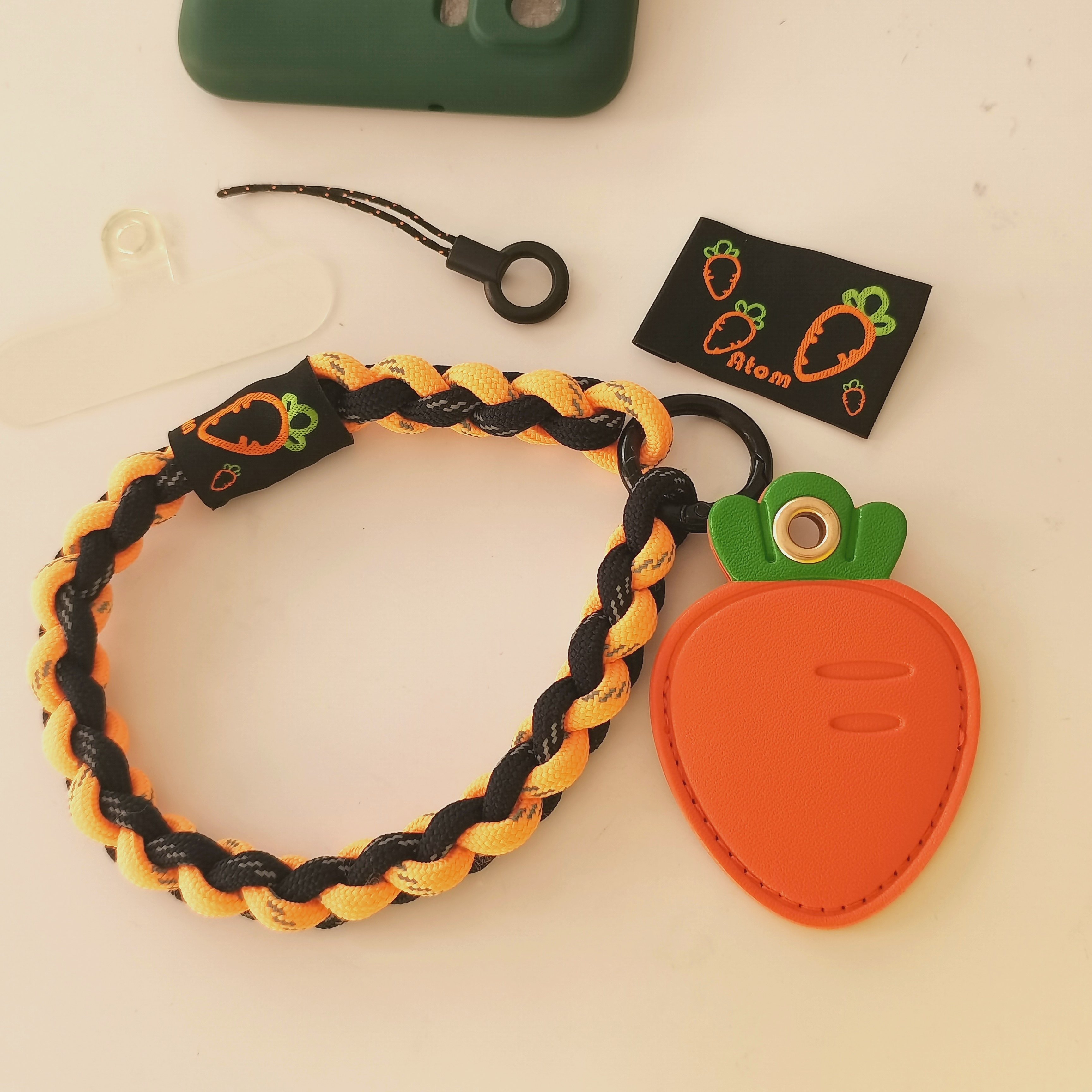 [暗黑胡萝卜]手机挂绳编织橙色门禁卡套airtag保护套手腕绳挂件