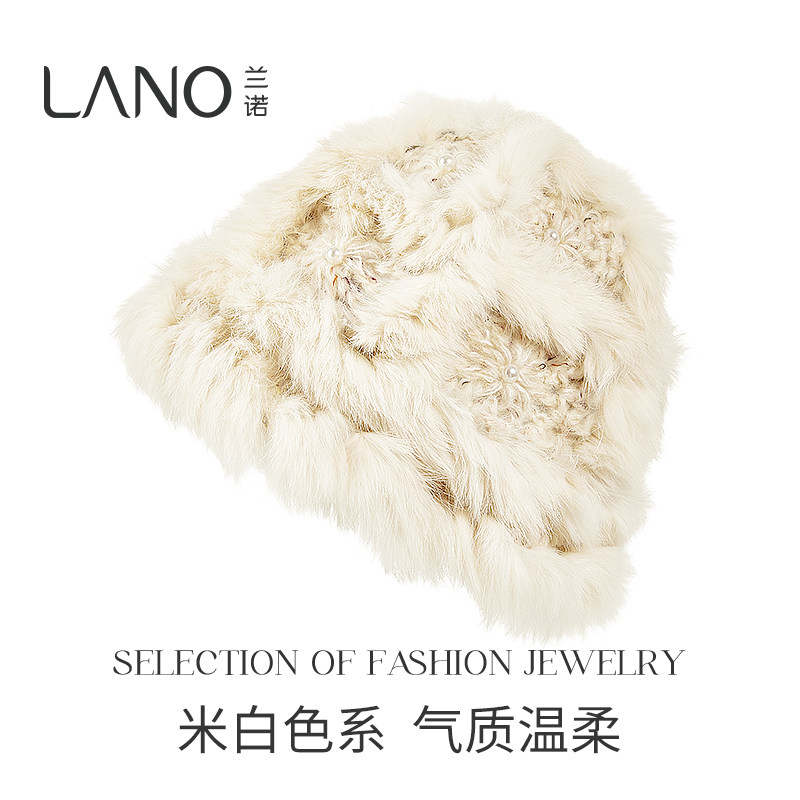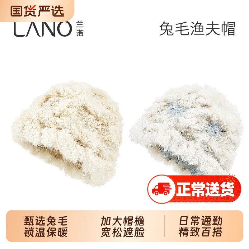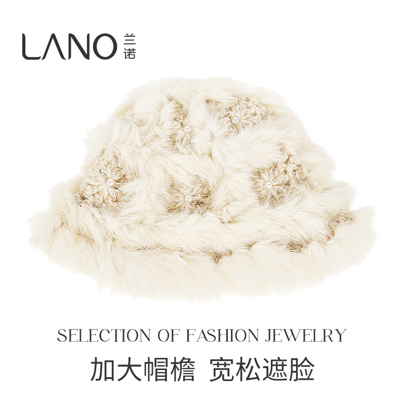 兰诺兔毛针织渔夫帽女2025新款冬时尚潮流毛茸茸防寒保暖毛绒帽子