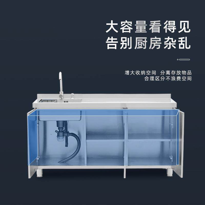 跨境304加厚不锈钢厨房橱柜一体式免安装水槽水盆整体灶台柜储物