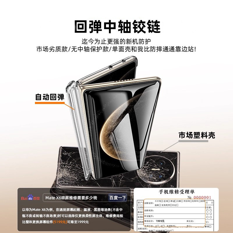 适用华为matex6手机壳新款MATE X6全透明轻薄散热matex5全包高端商务男女外硬x5折叠屏带支架镜头屏幕保护膜