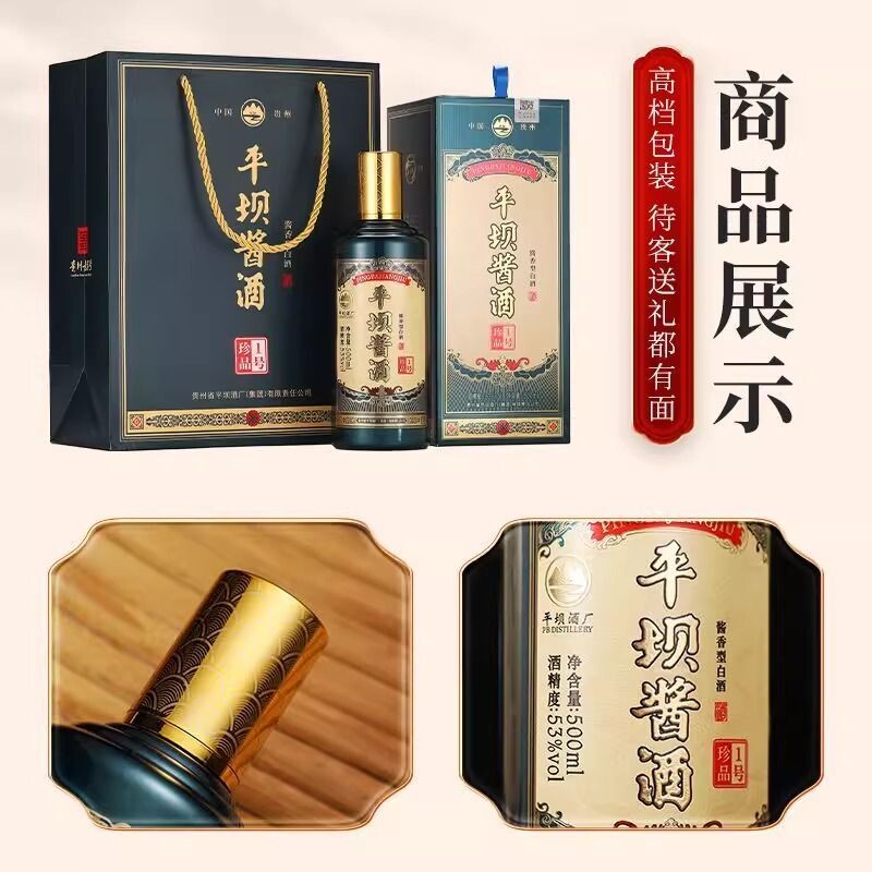 贵州平坝酱酒珍品一号53度酱香型500ml白酒纯粮食酒口粮酒瓶装