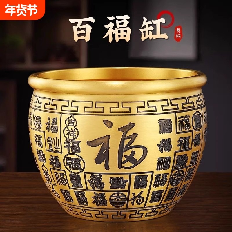 百福缸纯黄铜米缸聚财招财聚宝盆冰箱上的存钱罐桌面摆件
