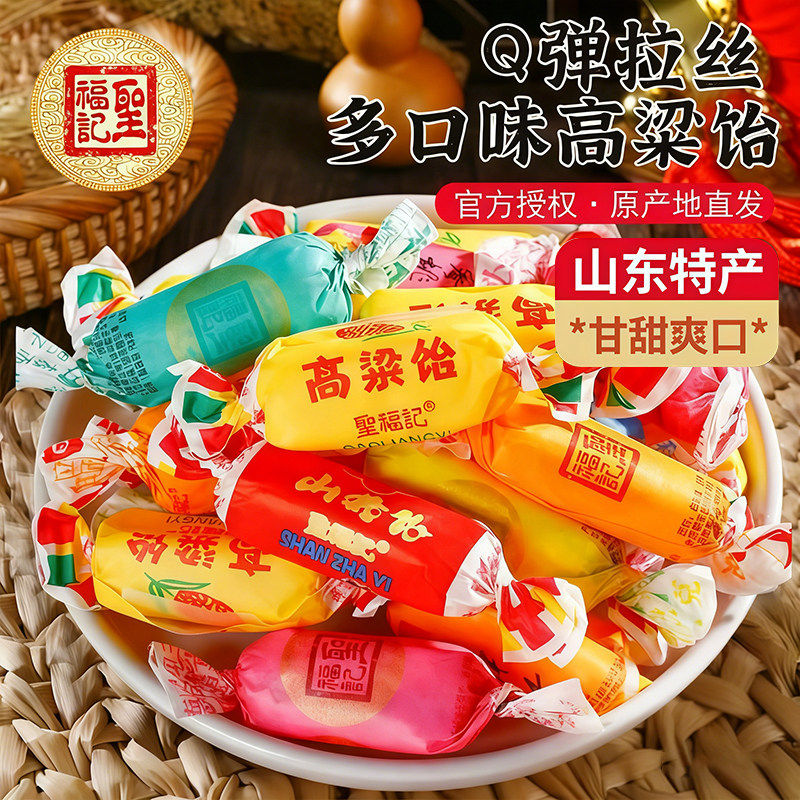 圣福记高粱饴拉丝水果软糖果网红爆款零食山东特产过年年货混合