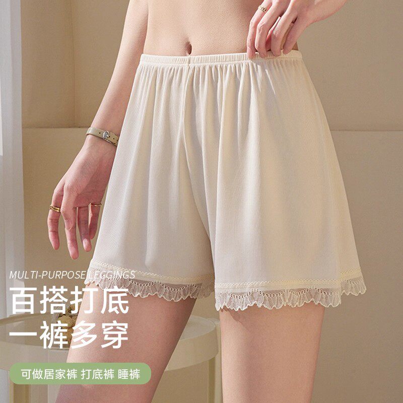 冰丝安全裤女夏季薄款可外穿宽松居家短裤打底保险裤蕾丝白色黑色