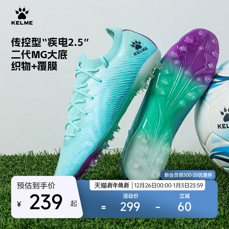 KELME/卡尔美成人足球鞋男疾电2.5 短钉比赛MG专业训练鞋人草飞盘