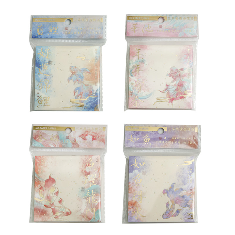 纸先生华池之鲤无粘性烫金便签本国风好运锦鲤记事手帐拼贴素材纸