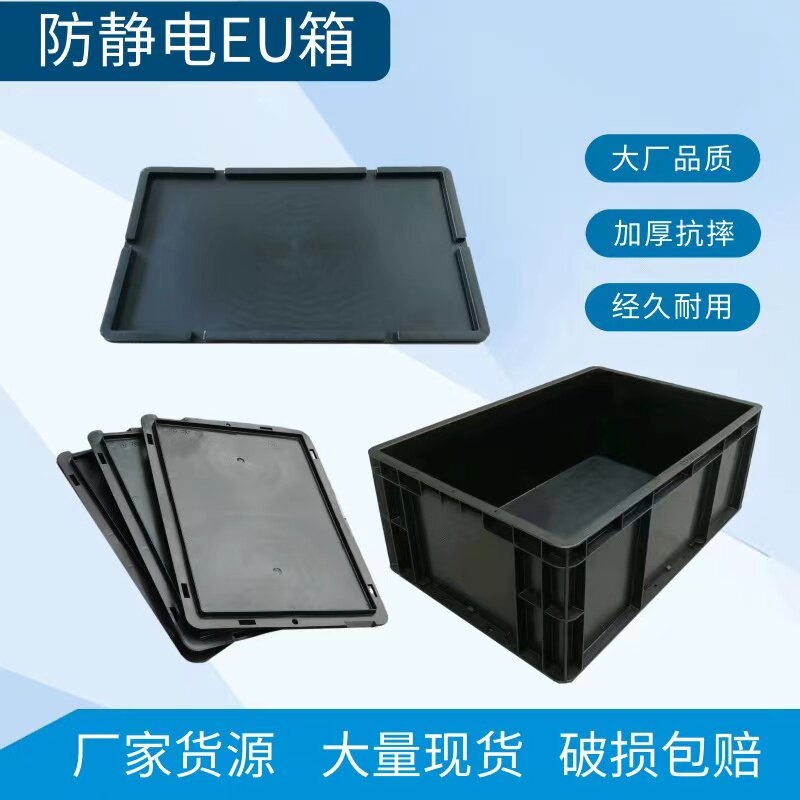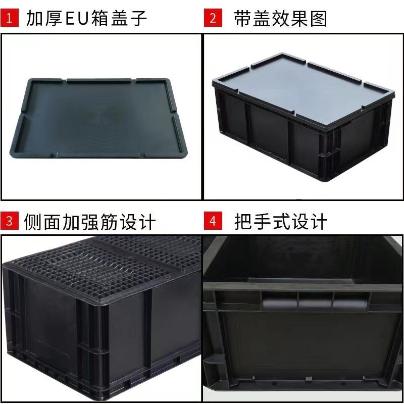 防静电黑色塑料周转箱长方形带盖超深框电子原件eu收纳零件盒