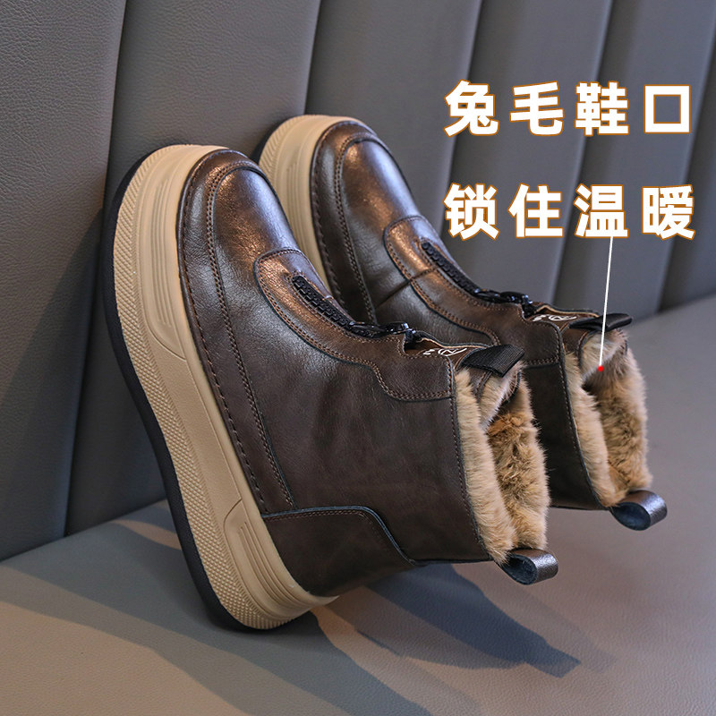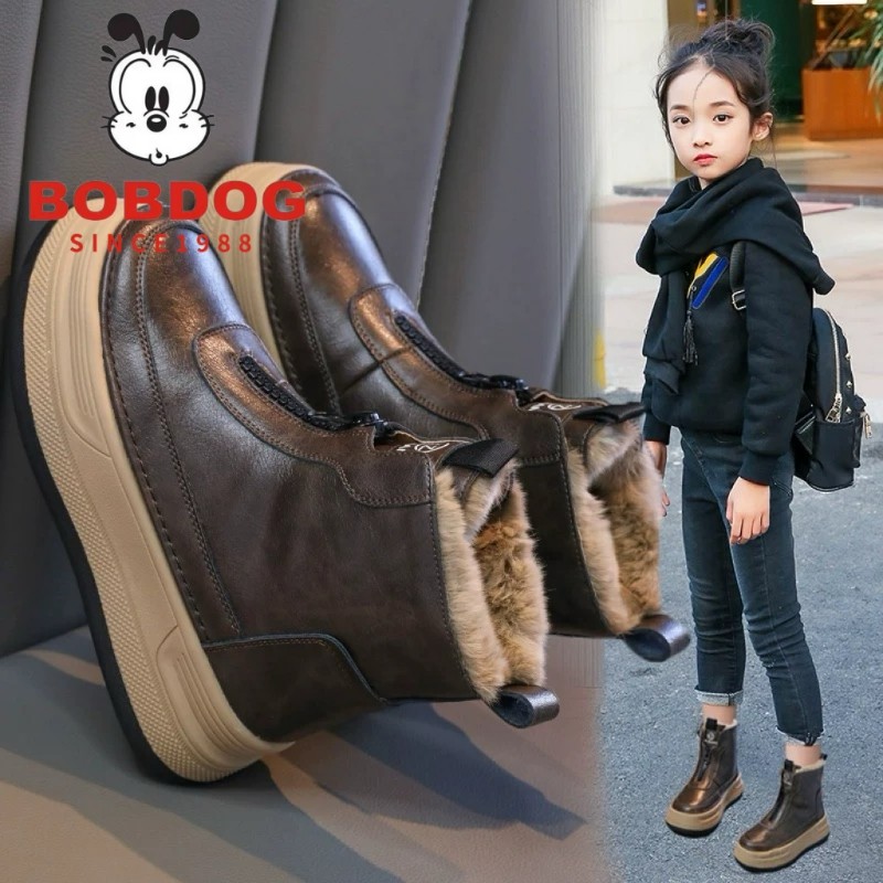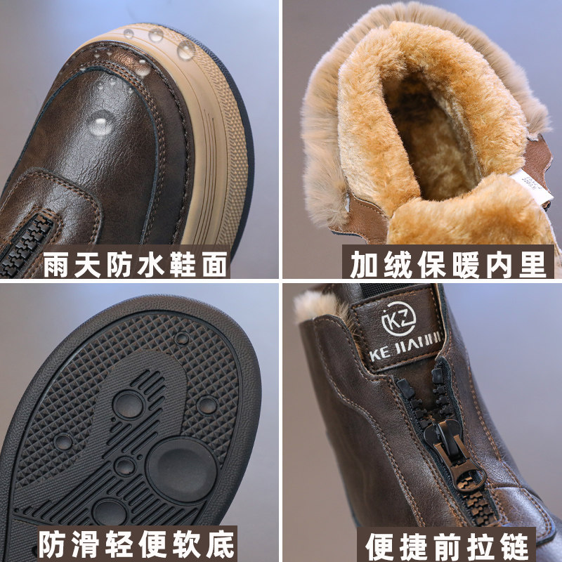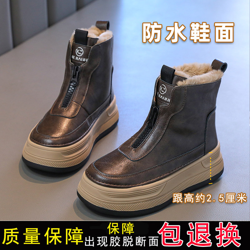 巴布豆女童雪地靴子2025冬季新款大棉鞋子儿童加绒短靴防滑防水