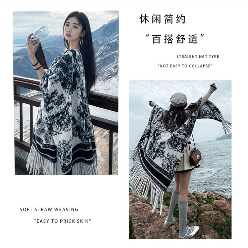 云南丽江民族风蓝色旅游披肩女外搭氛围感时尚披风斗篷针织围巾女