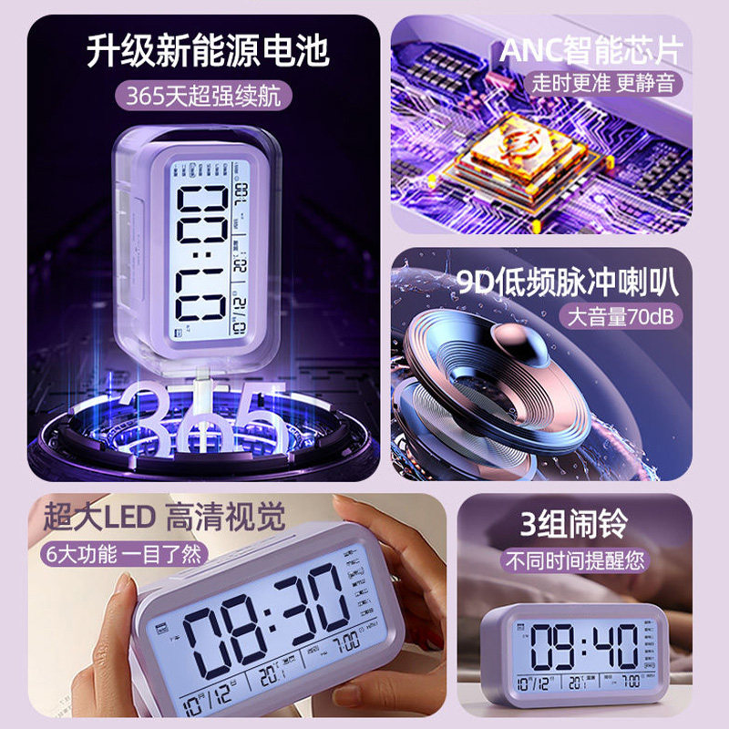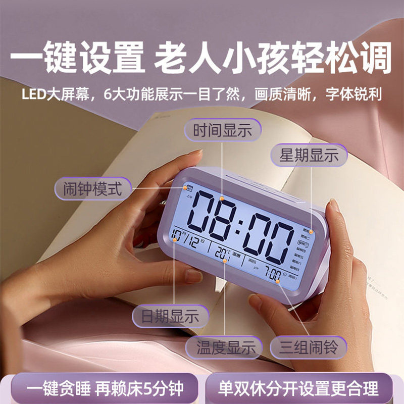 充电款闹钟学生起床神器2025新款强力叫醒初高中生多功能智能钟