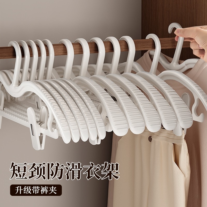 短颈衣架带夹子家用挂衣防鼓包无痕防肩角衣挂省空间缩脖子衣服架