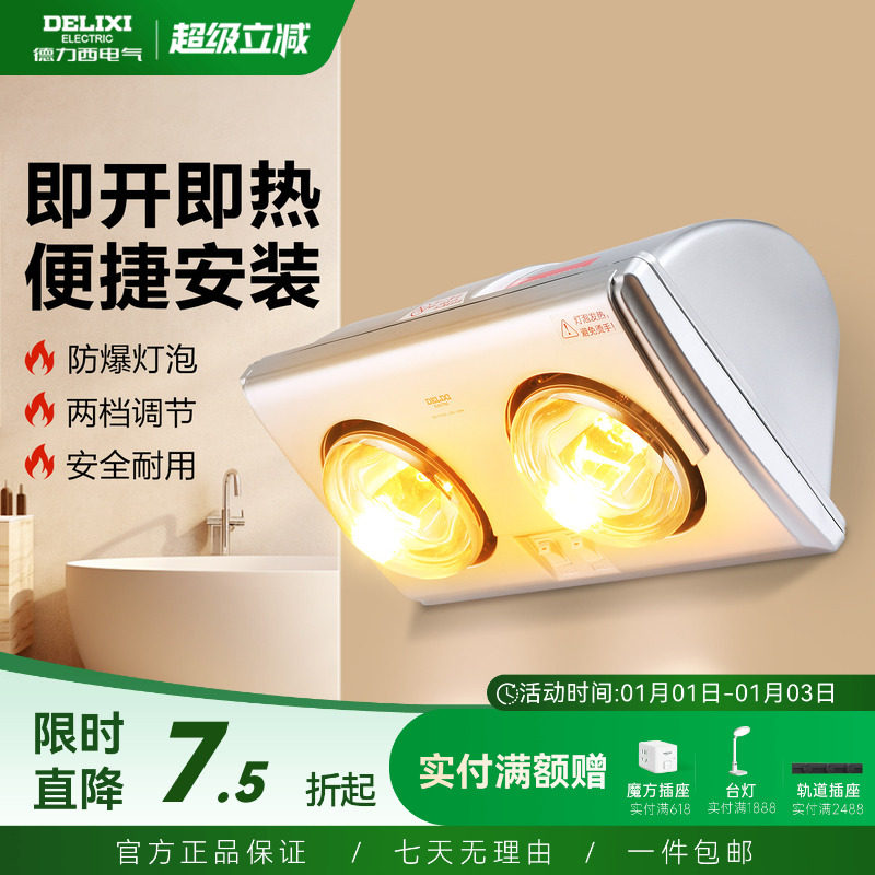 德力西壁挂式灯暖浴霸 二灯取暖安全速热 卫生间家用暖灯浴室浴霸