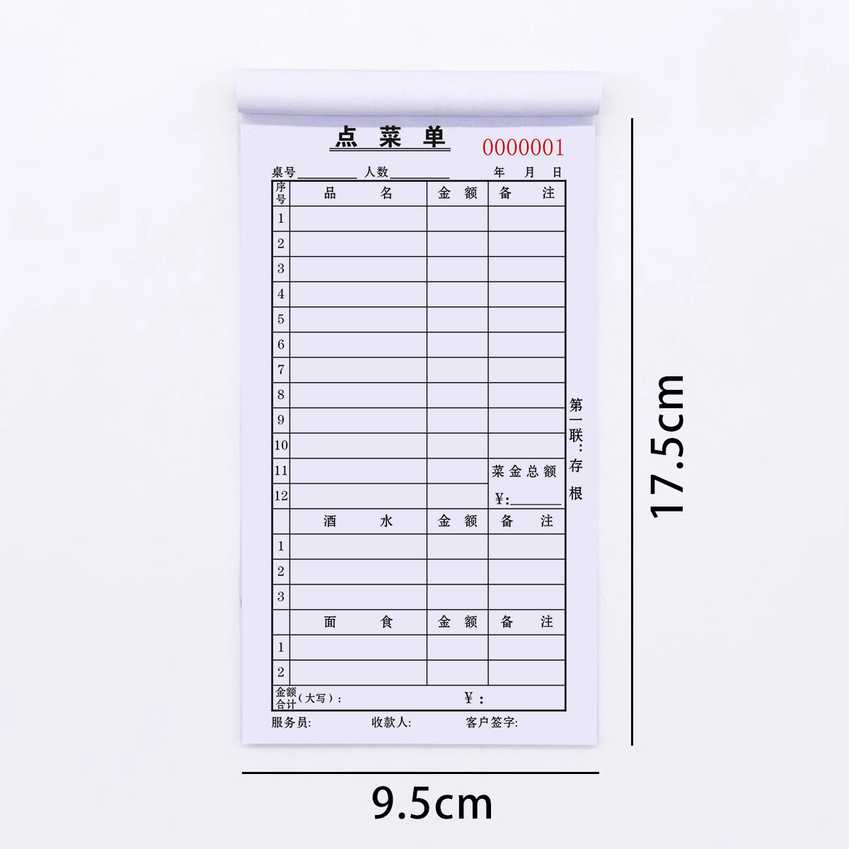 100本点菜单二联三联一联菜单定制饭店烧烤店餐饮专用单联两联点单本手写菜单本定做酒店火锅店酒水单