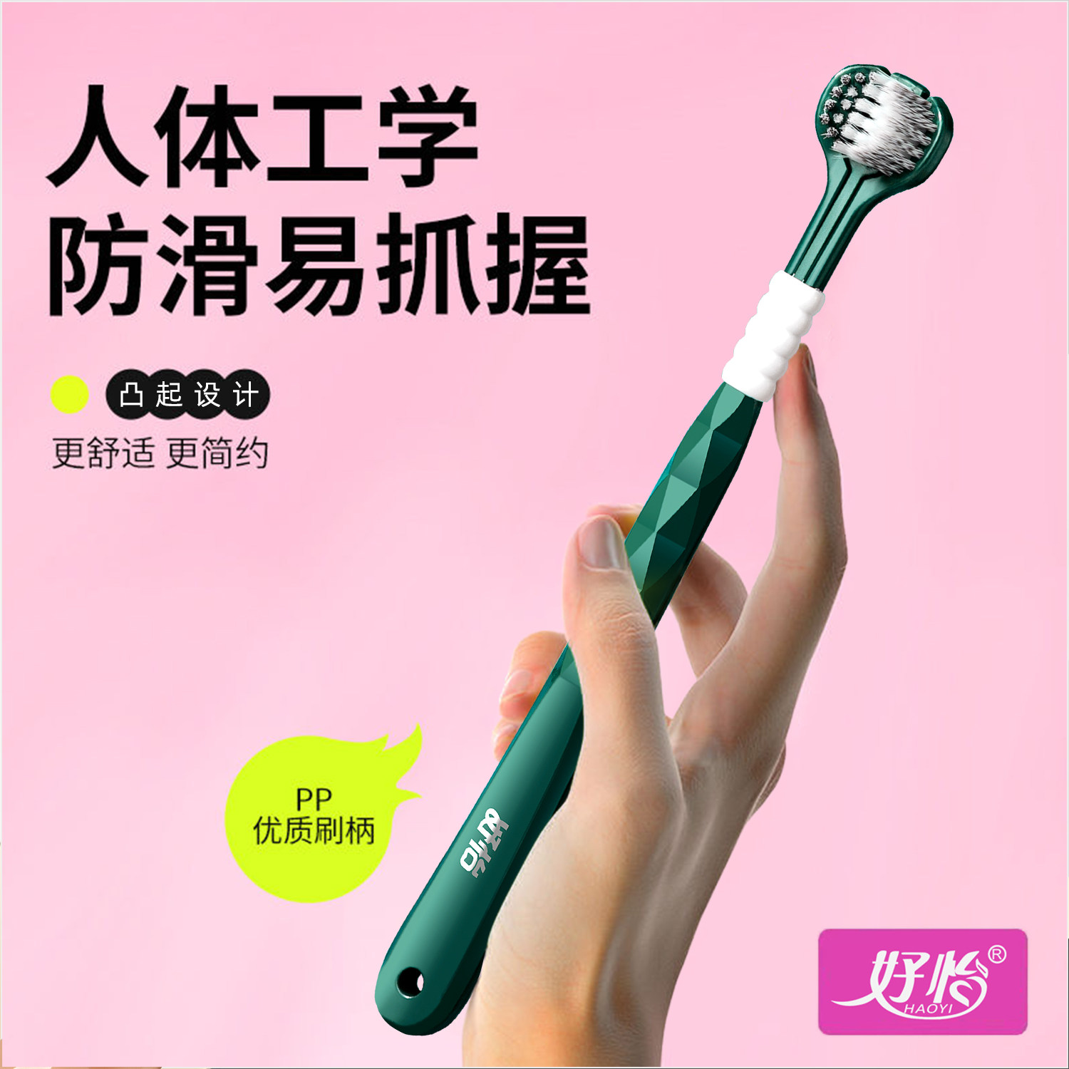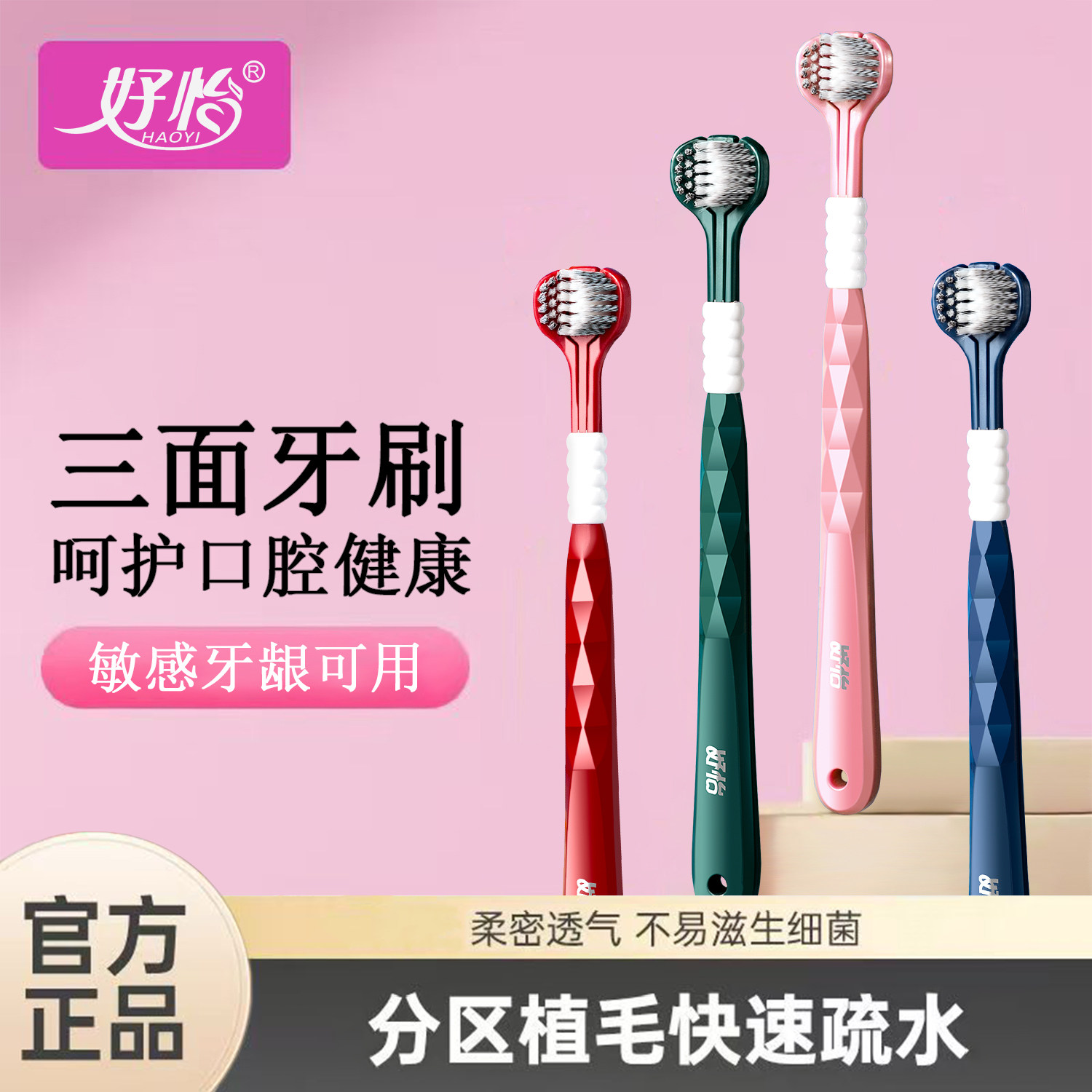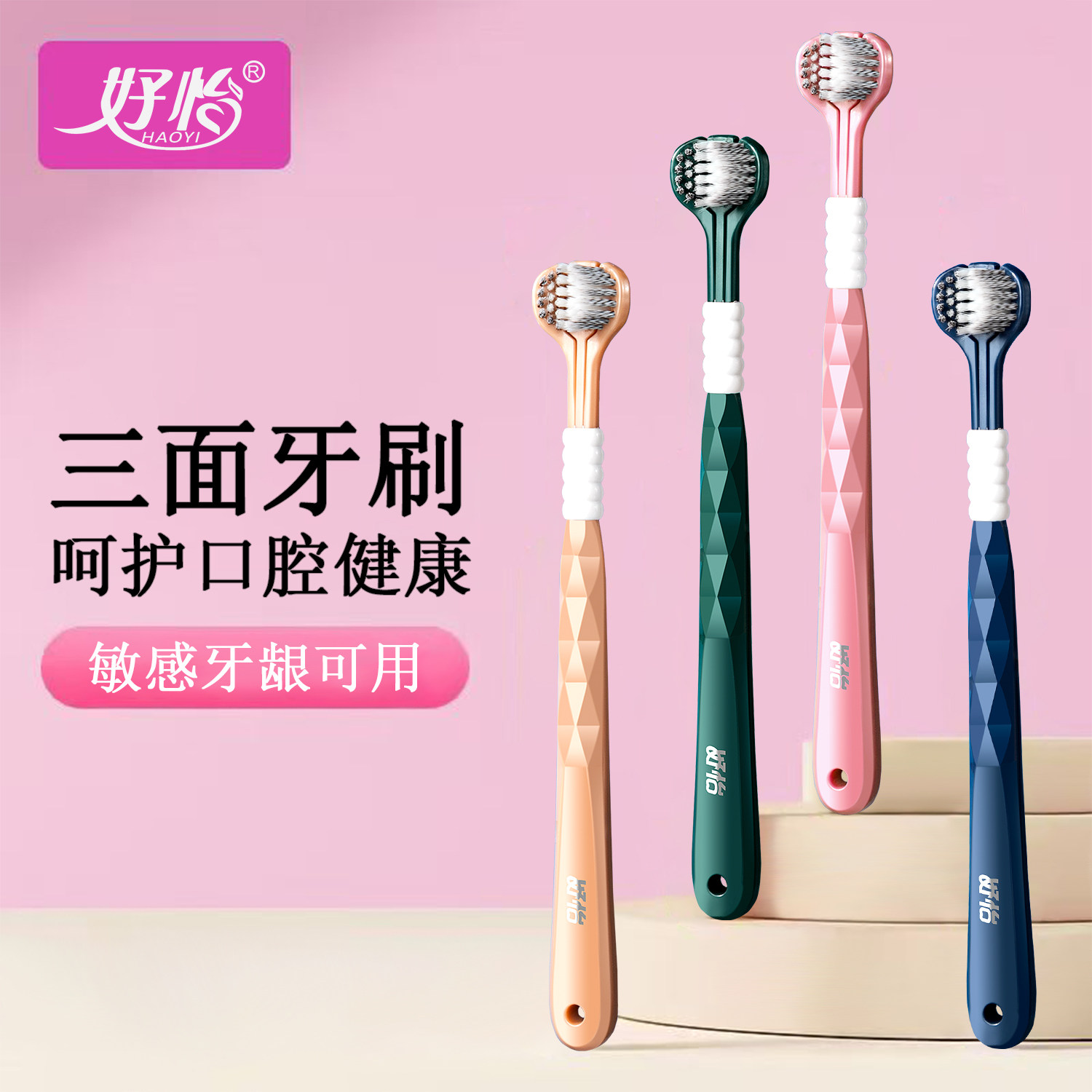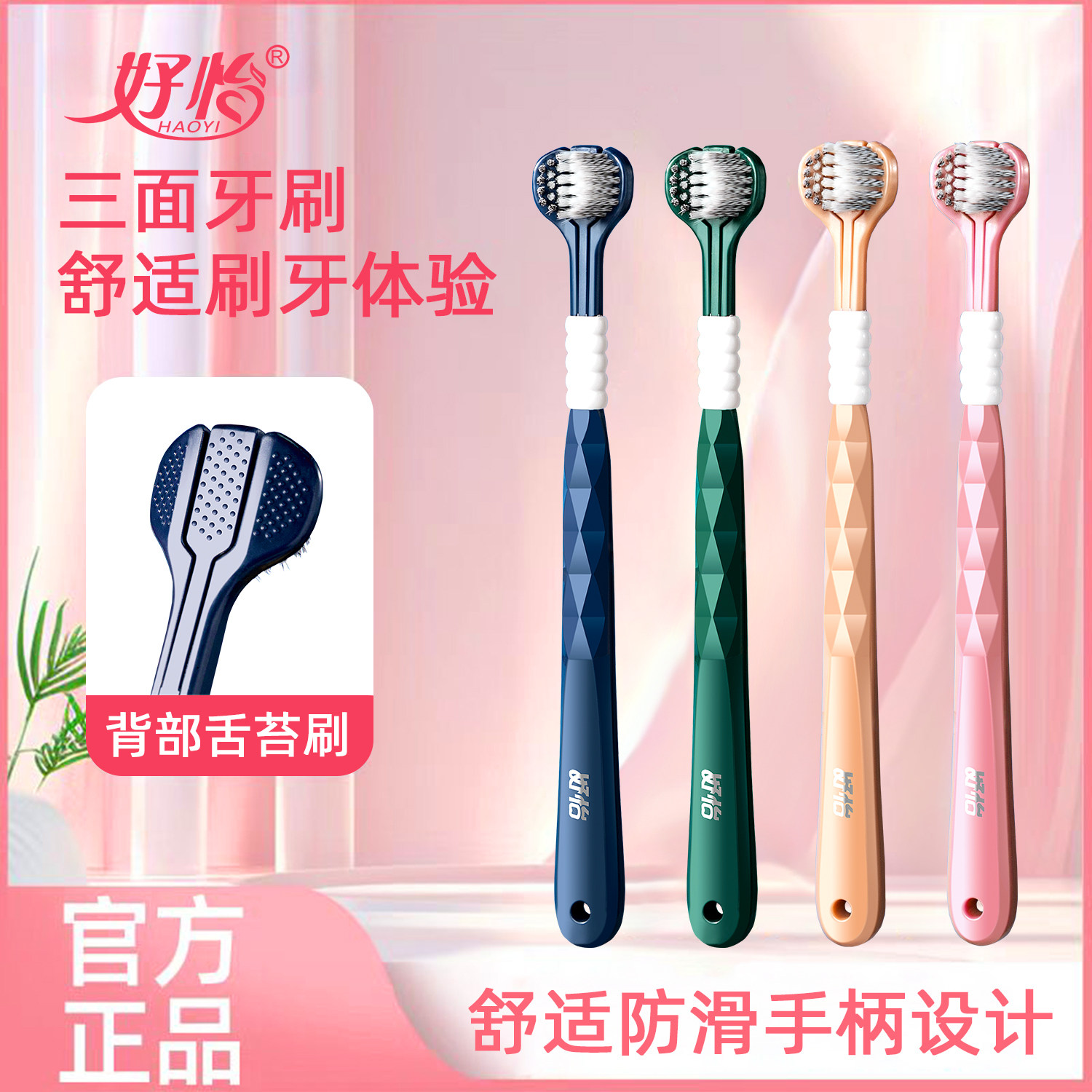 怡宝三面牙刷成人软毛包裹式立体无死角头舌苔清洁护齿家庭装男女