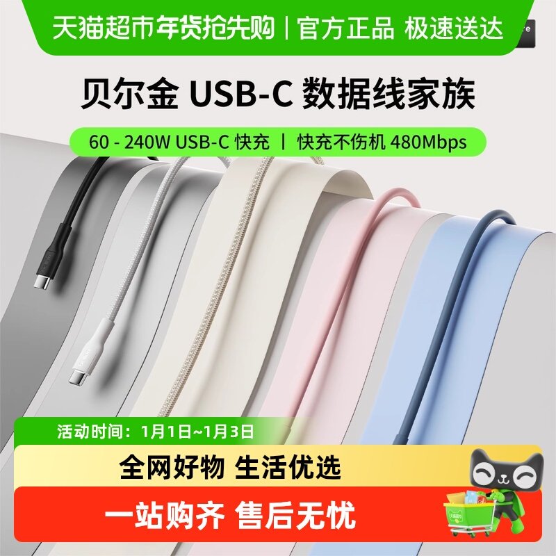 Belkin贝尔金TypeC转C数据线240W快充USB-C适iPhone17ProMax安卓