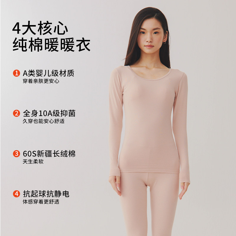 俞兆林保暖内衣套装纯棉秋衣女士打底全棉毛衫上衣胖mm线衣