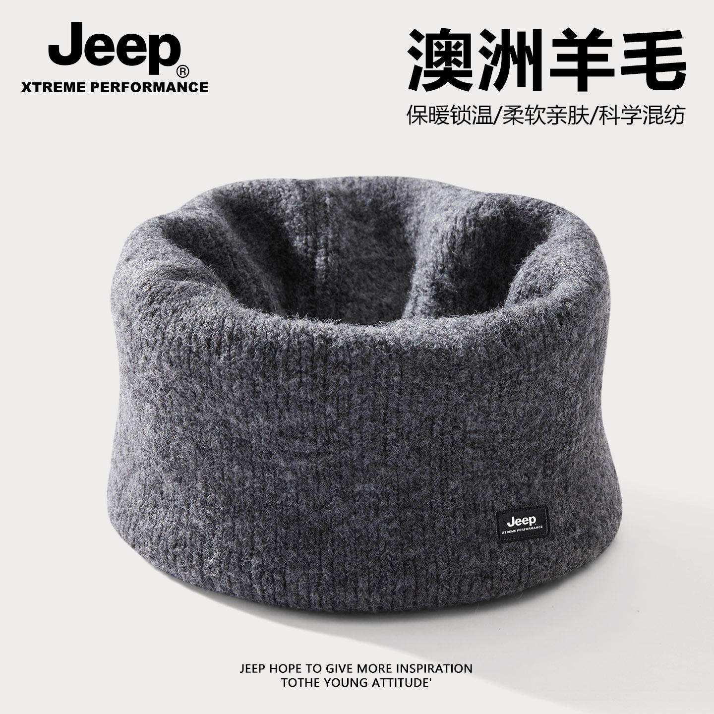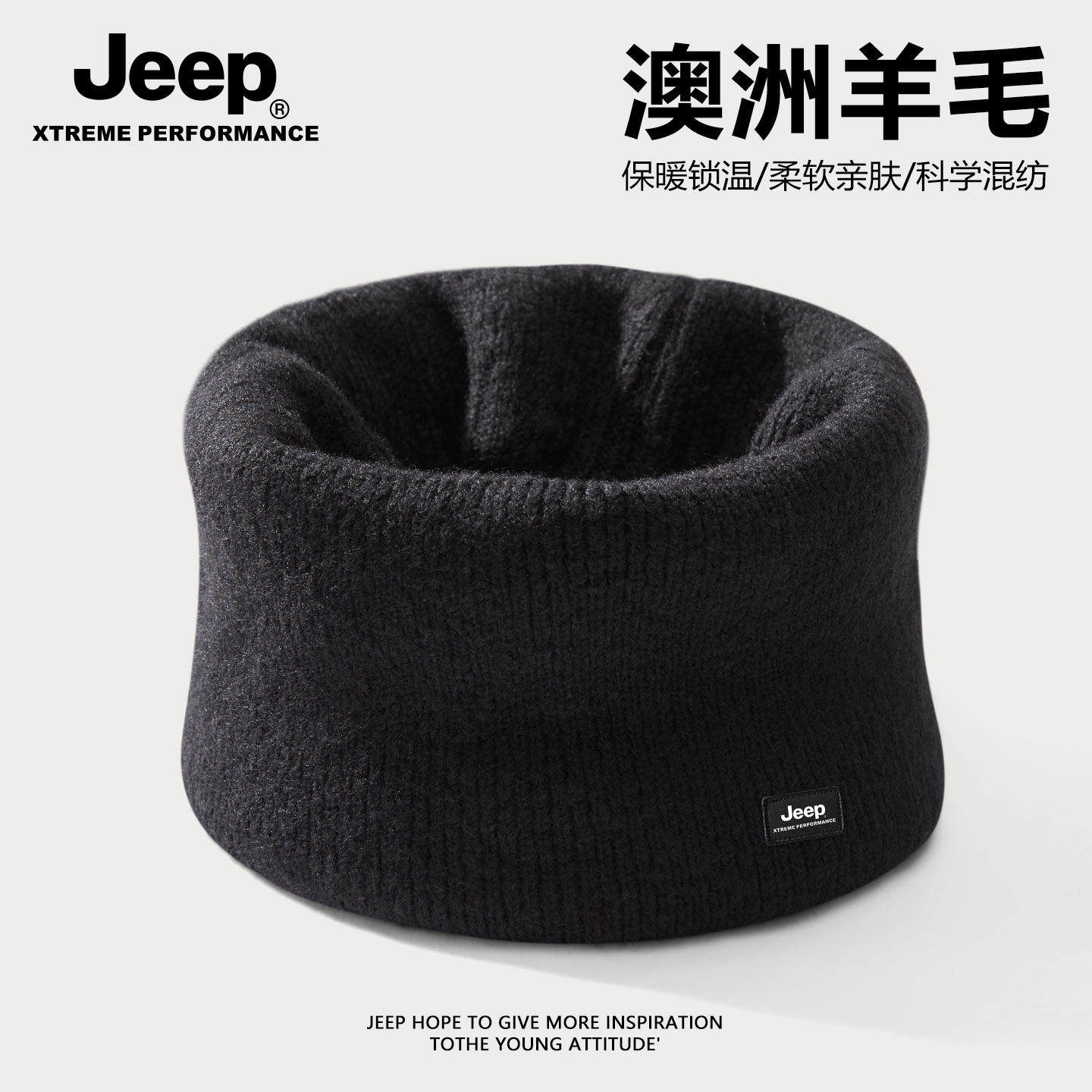 Jeep吉普男士冬季羊毛混纺围脖户外骑行加厚防风面罩保暖护颈脖套