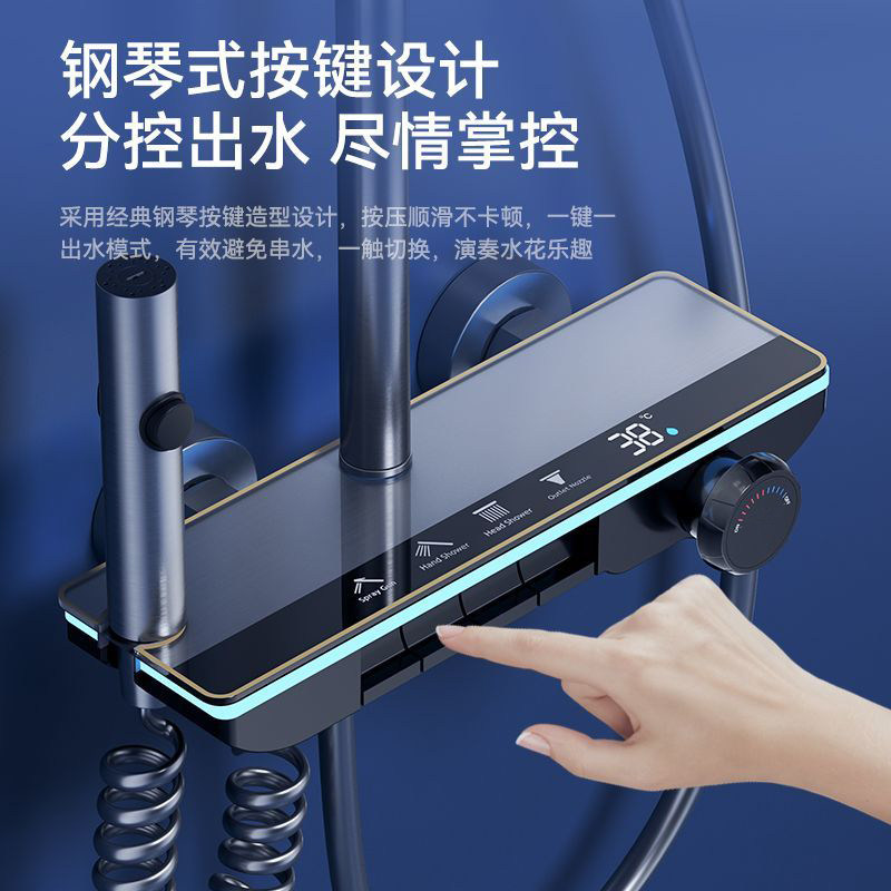 淋浴花洒套装家用智能数显沐浴卫生间浴室恒温增压钢琴氛围灯全铜