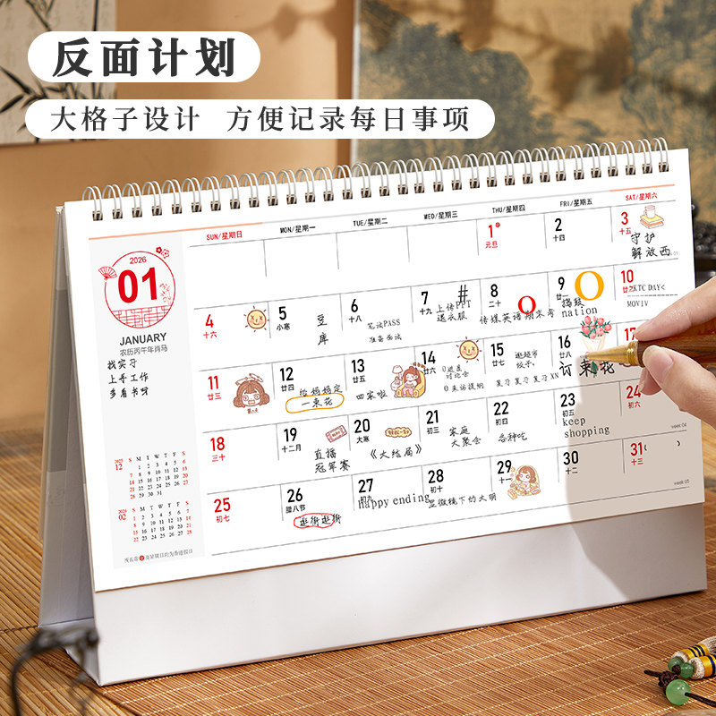 台历2026年新款日历定制logo创意简约小清新韩式办公年历个性中国风桌面摆件商务工作记事计划本订制广告月历