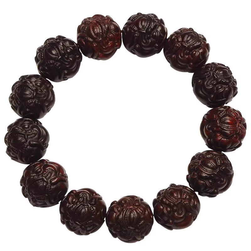 小叶紫檀貔貅手串男佛珠文玩手链木质手把件十二生肖招财貔貅雕刻