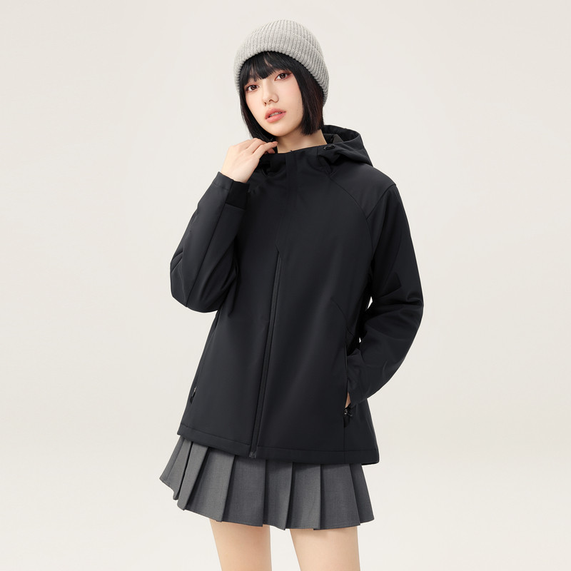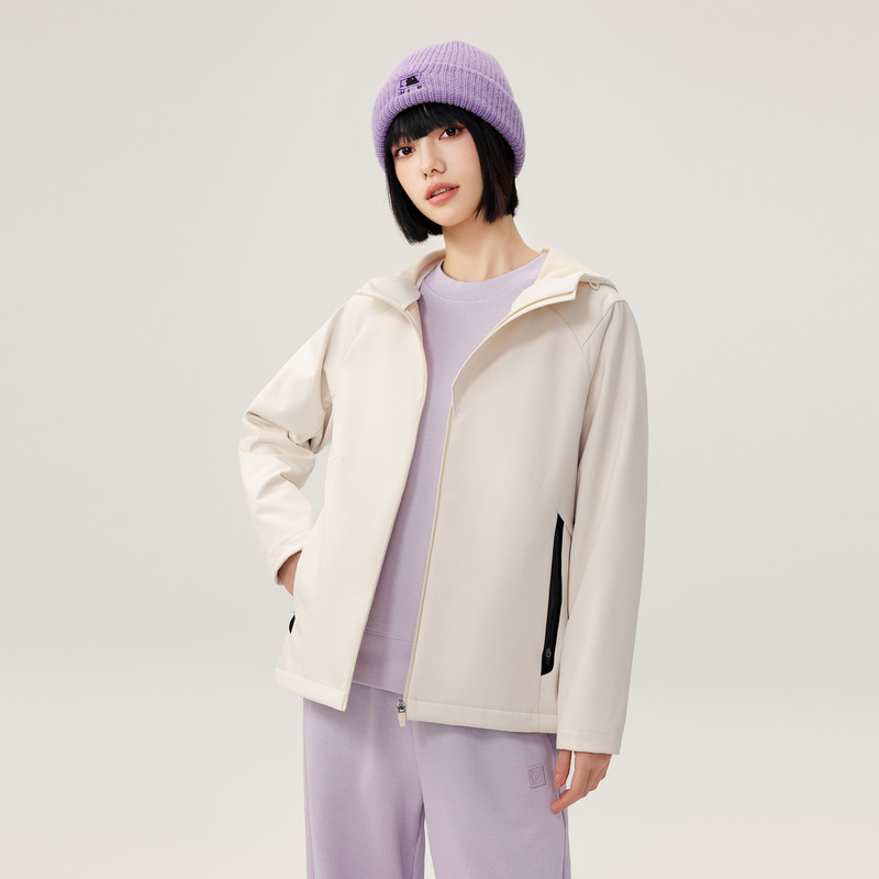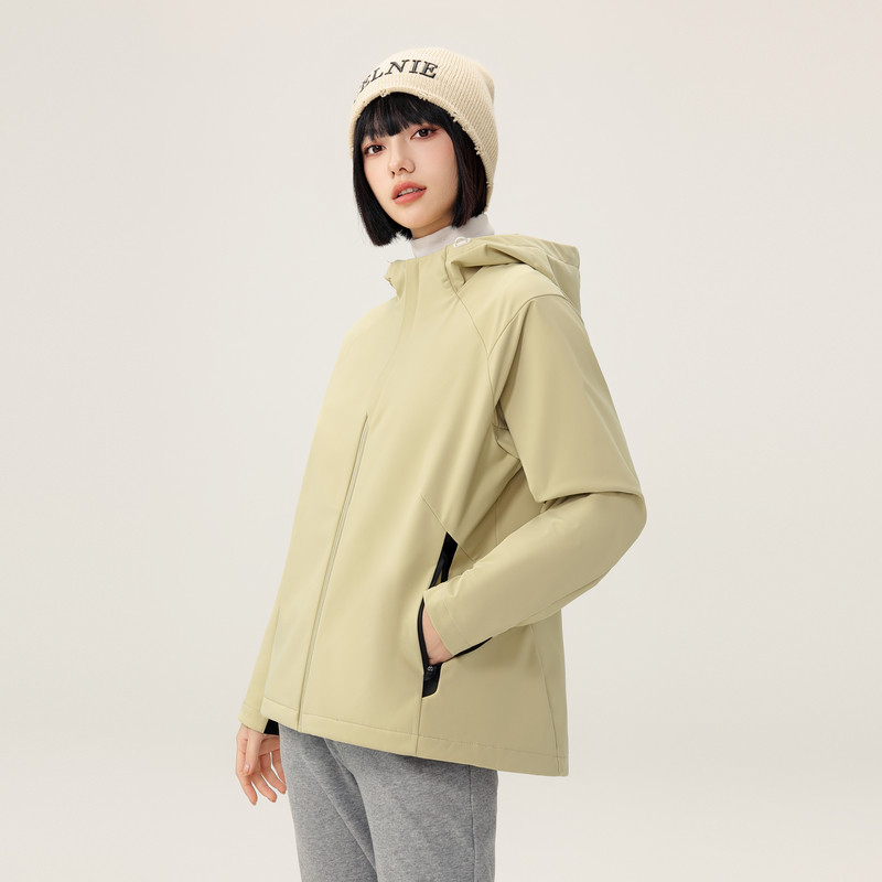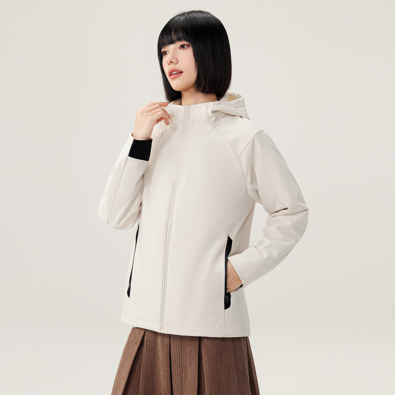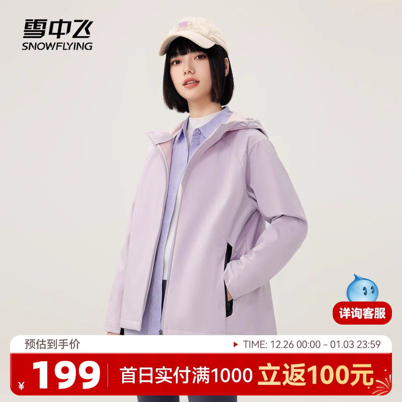 雪中飞2025春秋新款女士户外连帽休闲防风外套运动软壳早春流行