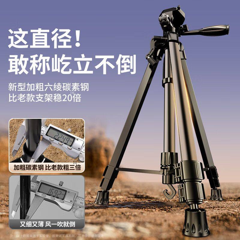 手机拍摄支架直播专用自拍杆三脚架落地式多功能支撑架通用捭机架户外便携伸缩升降网课考研复试架子三角支夹