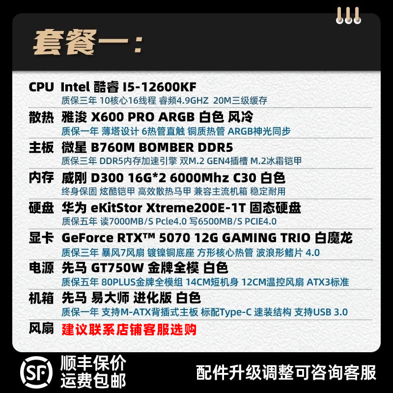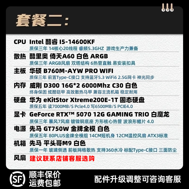 装机猿玩家店特价微星GeForceRTX5070白魔龙/14600KF/7800X3D主机