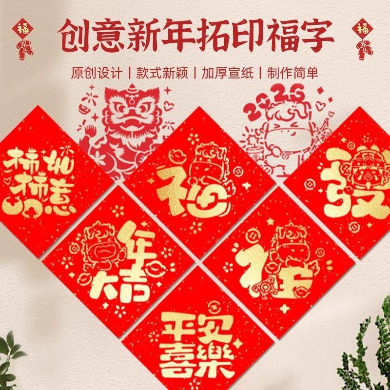 diy手工材料2026马年福字拓印年画非遗团建儿童过新年亲子活动制作套装幼儿园元旦春节镂空拓印模板工具颜料