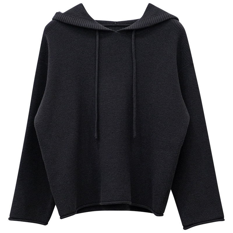 一三良品小个子 韩系纯色百搭宽松连帽毛衣女冬套头针织衫上衣