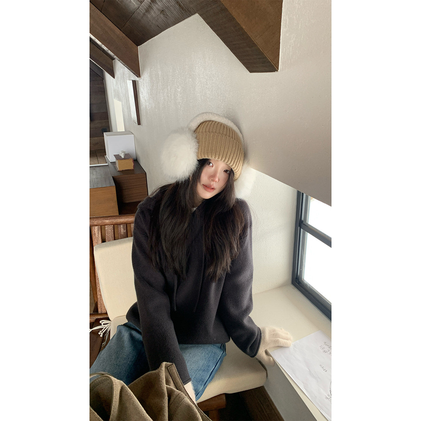 三福毛衣慵懒高级感2025新款冬季可爱毛绒小狗宽松上衣女装509727