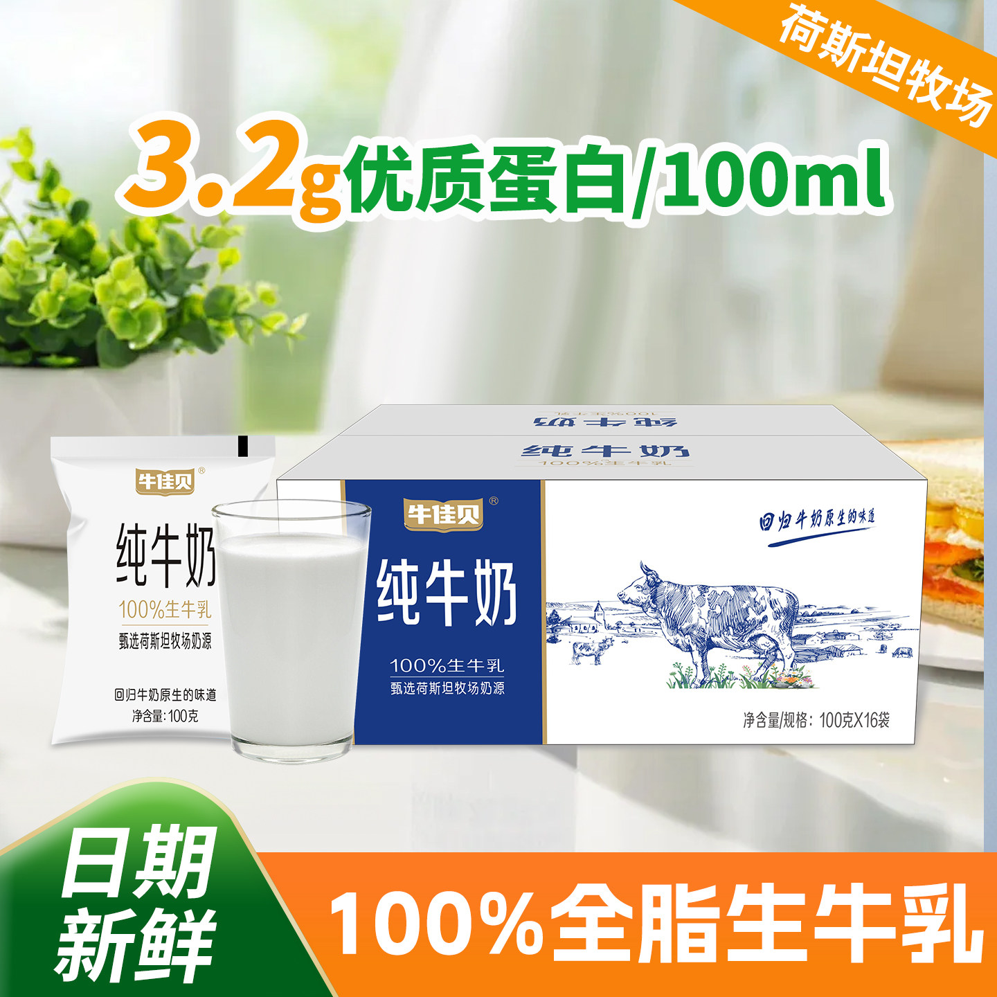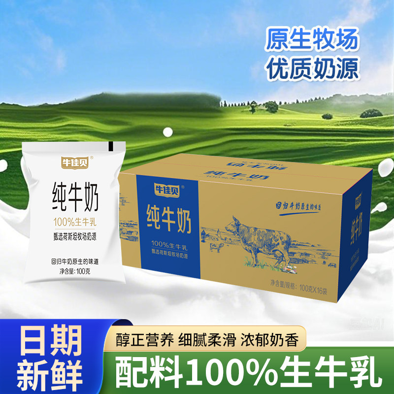 牛佳贝纯牛奶160ml*16袋100%全脂生牛乳0添加营养儿童学生早餐奶