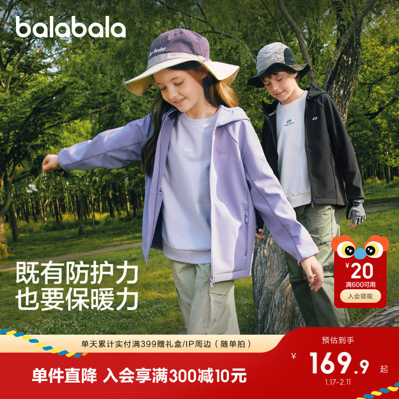 巴拉巴拉童装软壳衣儿童外套男童女童2025新款春秋装户外防风防水