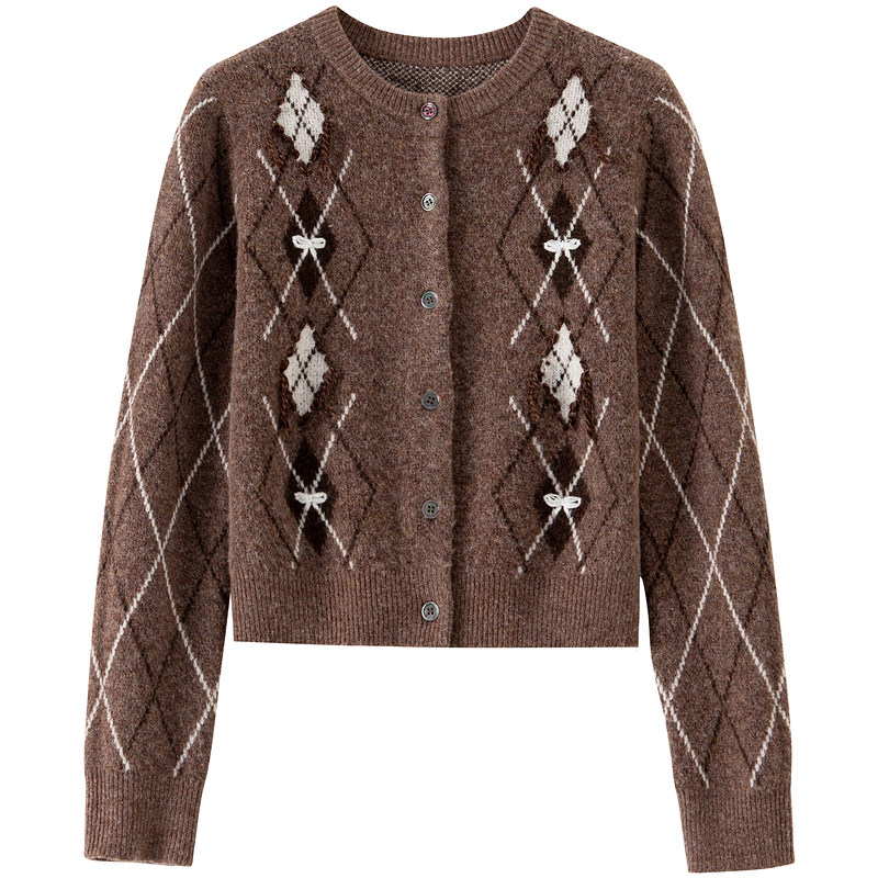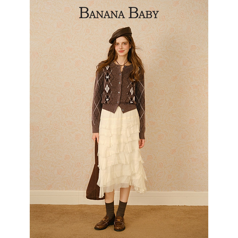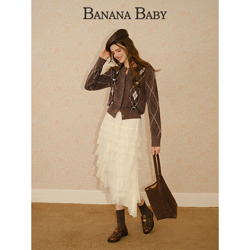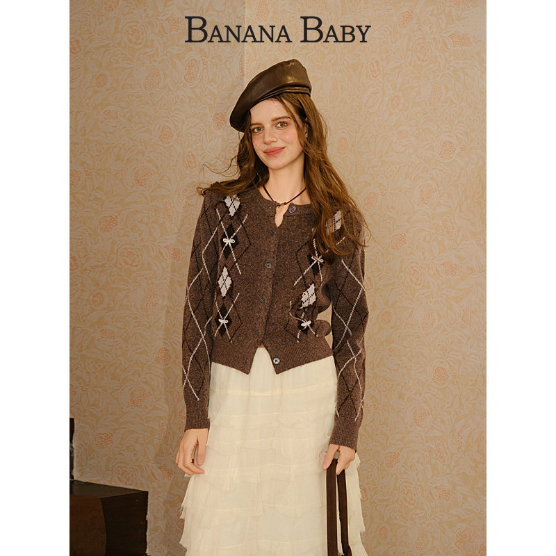 【绵羊毛】BANANA BABY2025年冬季新款英伦学院风针织开衫女毛衣
