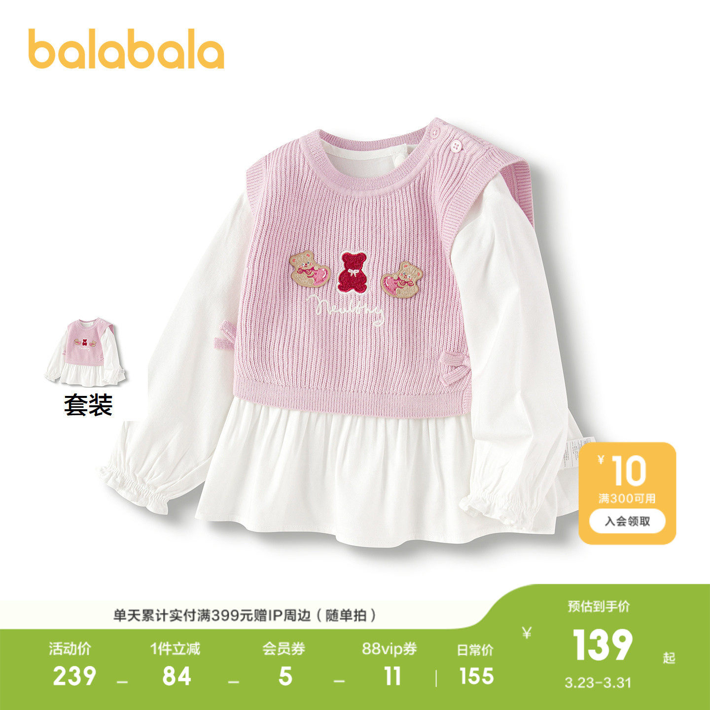 【商场同款】巴拉巴拉宝宝衬衫套装女童背心两件套秋装甜纯棉柔软