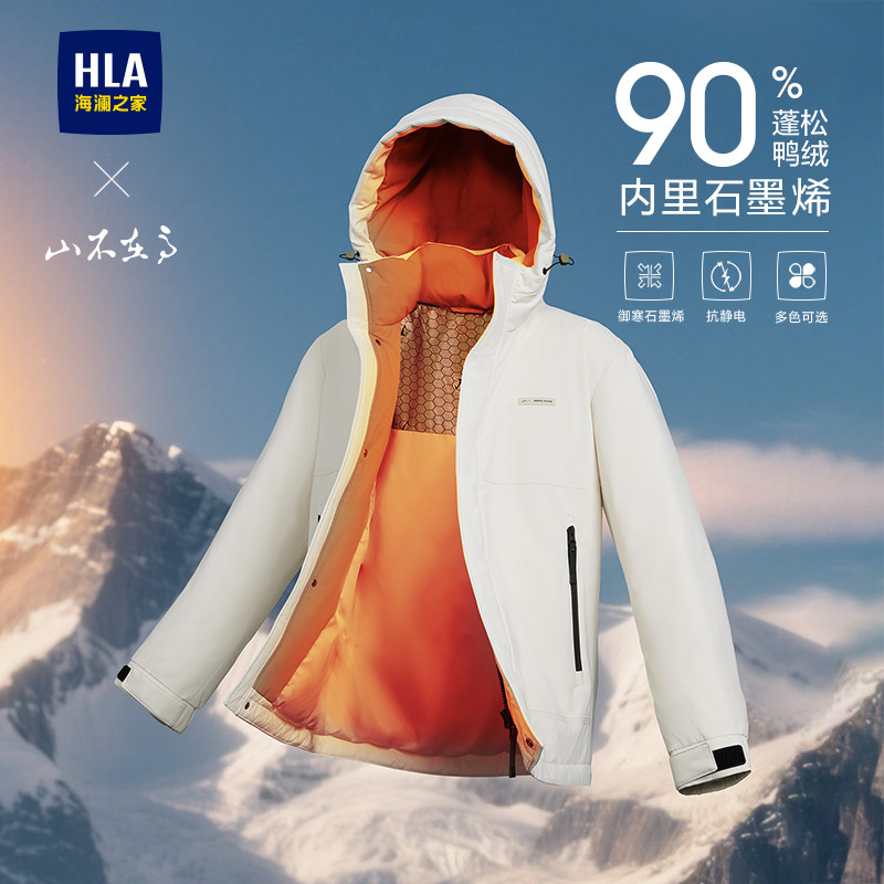 HLA/海澜之家山不在高系列羽绒服25秋冬新连帽石墨烯鸭绒外套男