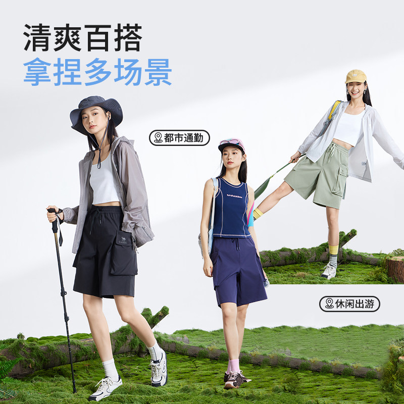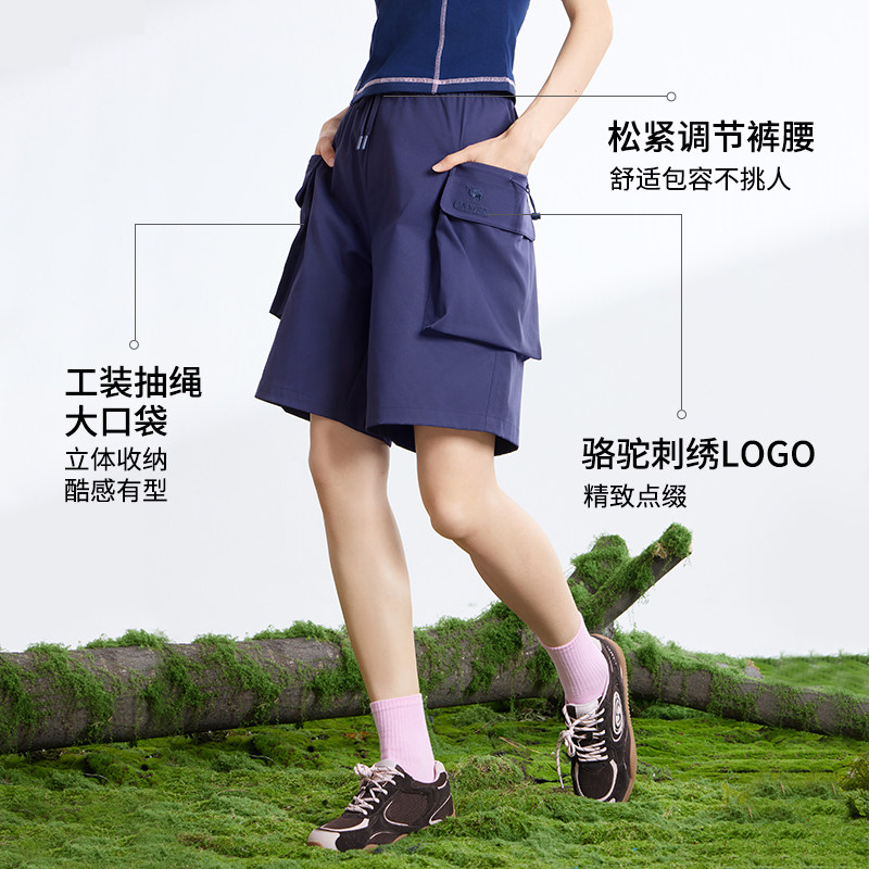 骆驼女装凉感工装短裤2026夏季宽松薄款弹力休闲运动五分裤男
