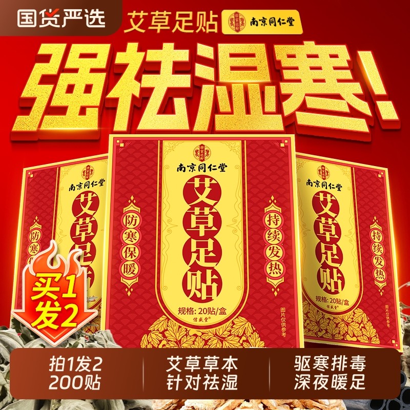 同仁堂艾草足贴北京去湿气排毒排体内湿寒暖足贴脚底贴除湿助睡眠
