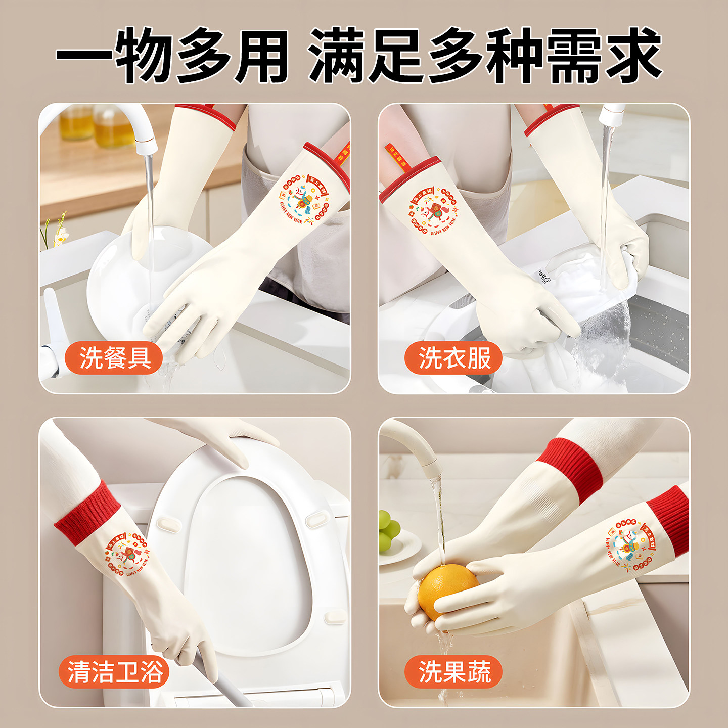 洗碗手套加绒加厚保暖款男女厨房耐用橡胶乳胶皮洗衣加长手套家务
