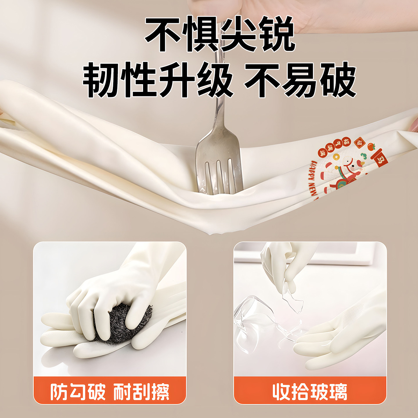 洗碗手套女家用厨房耐用型贴手防水胶皮手套刷碗做家务清洁洗衣服