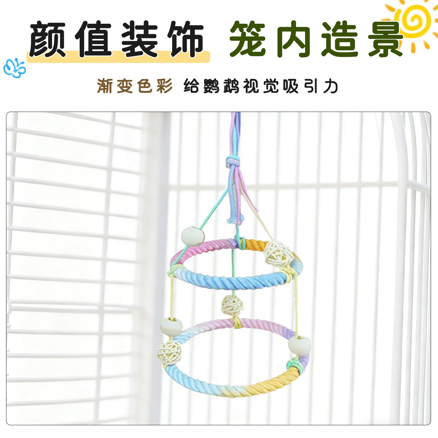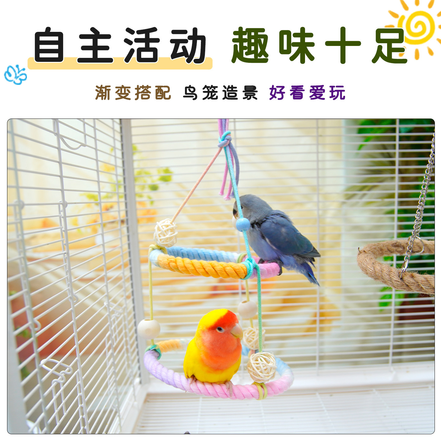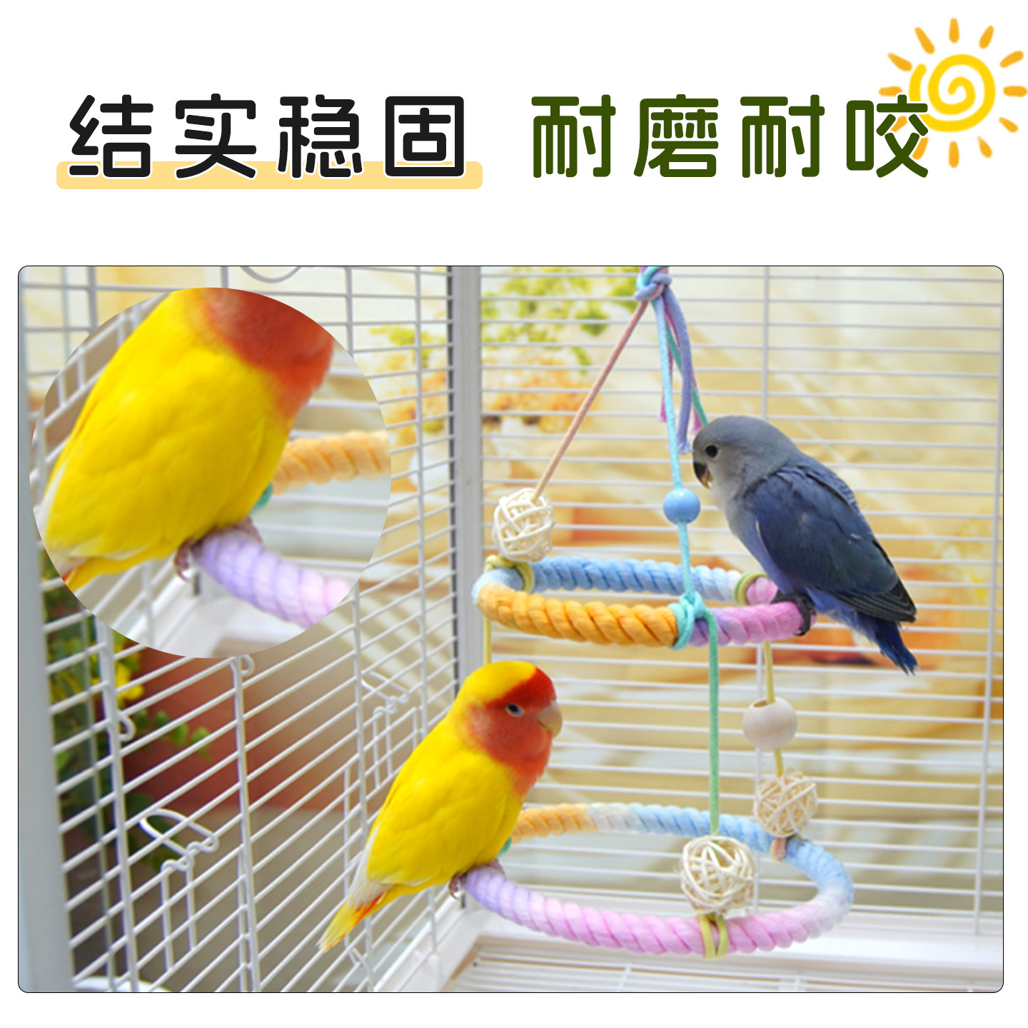 鸟秋千鹦鹉玩具棉绳双层站台吊环虎皮牡丹玄凤栖架鸟站架鸟笼装饰