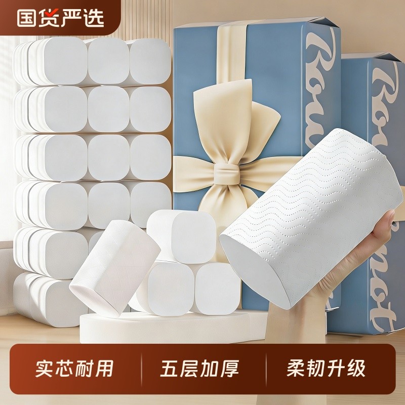 丽邦5层妇婴大卷纸2500g/1800g家庭实惠装卷筒纸无芯手纸厕所纸巾