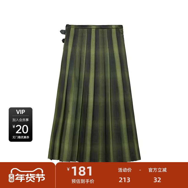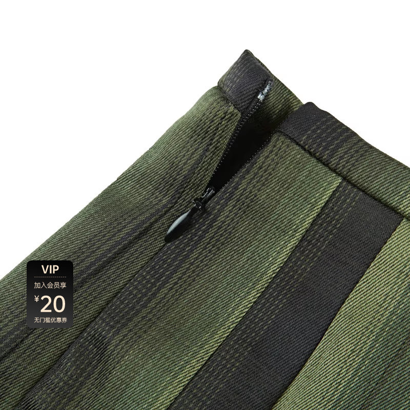高腰伞裙 格纹百褶 个性拼接