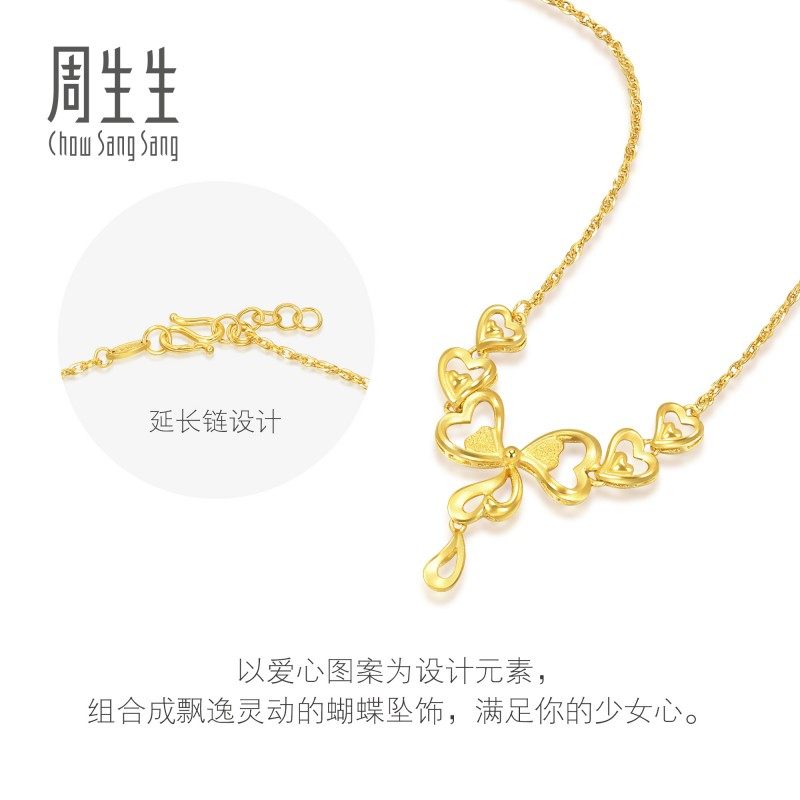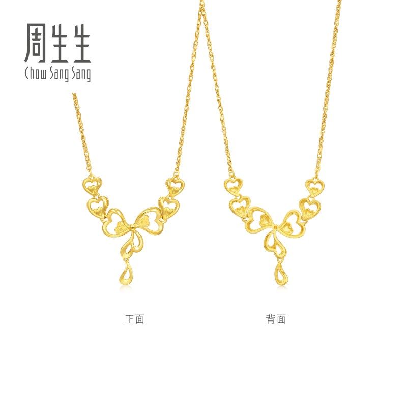 周生生婚庆婚嫁足金生生有囍蝴蝶结黄金项链三金84758N