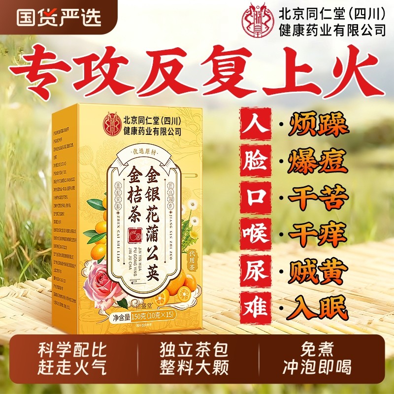 北京同仁堂金银花菊花蒲公英金桔茶叶清热解排毒去火养生茶信盛堂