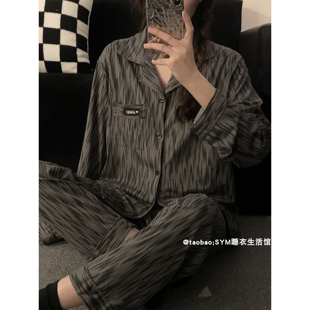 安比斯情侣睡衣舒适纯棉秋季女长袖男女同款休闲家居服套装可出门