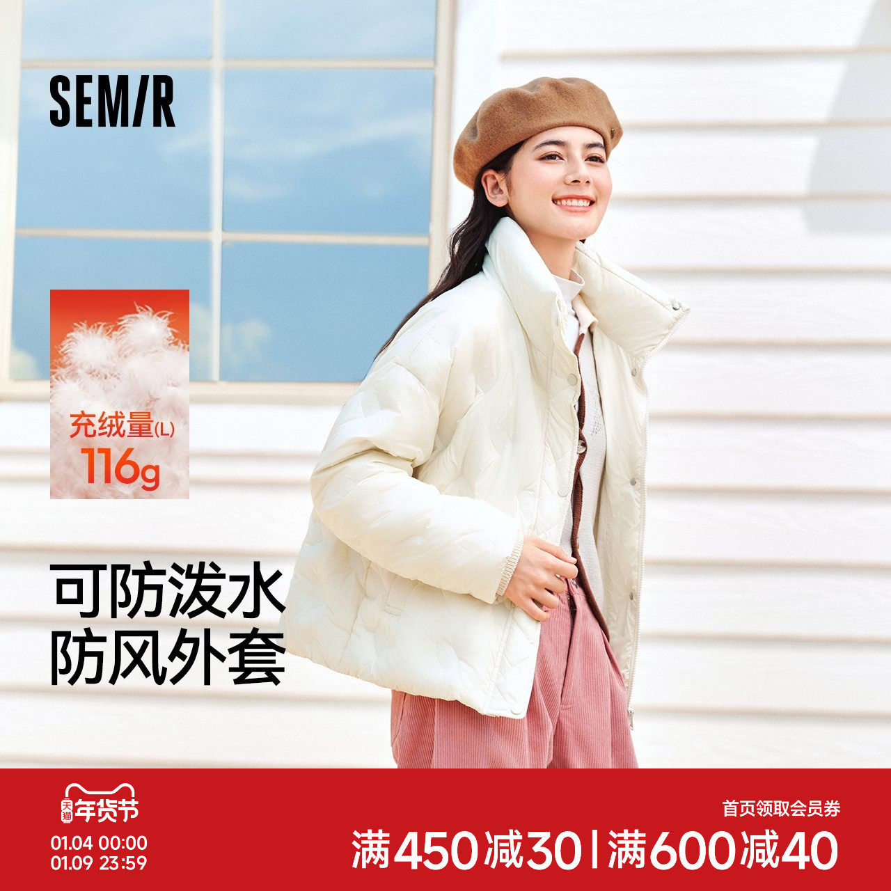 森马羽绒服女冬季薄款90绒子防泼水防风宽松千鸟格立领设计感外套