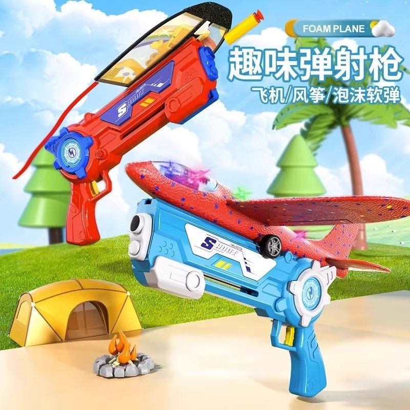 网红爆款弹射泡沫飞机手持发射枪男孩户外风筝运动飞天滑翔机玩具